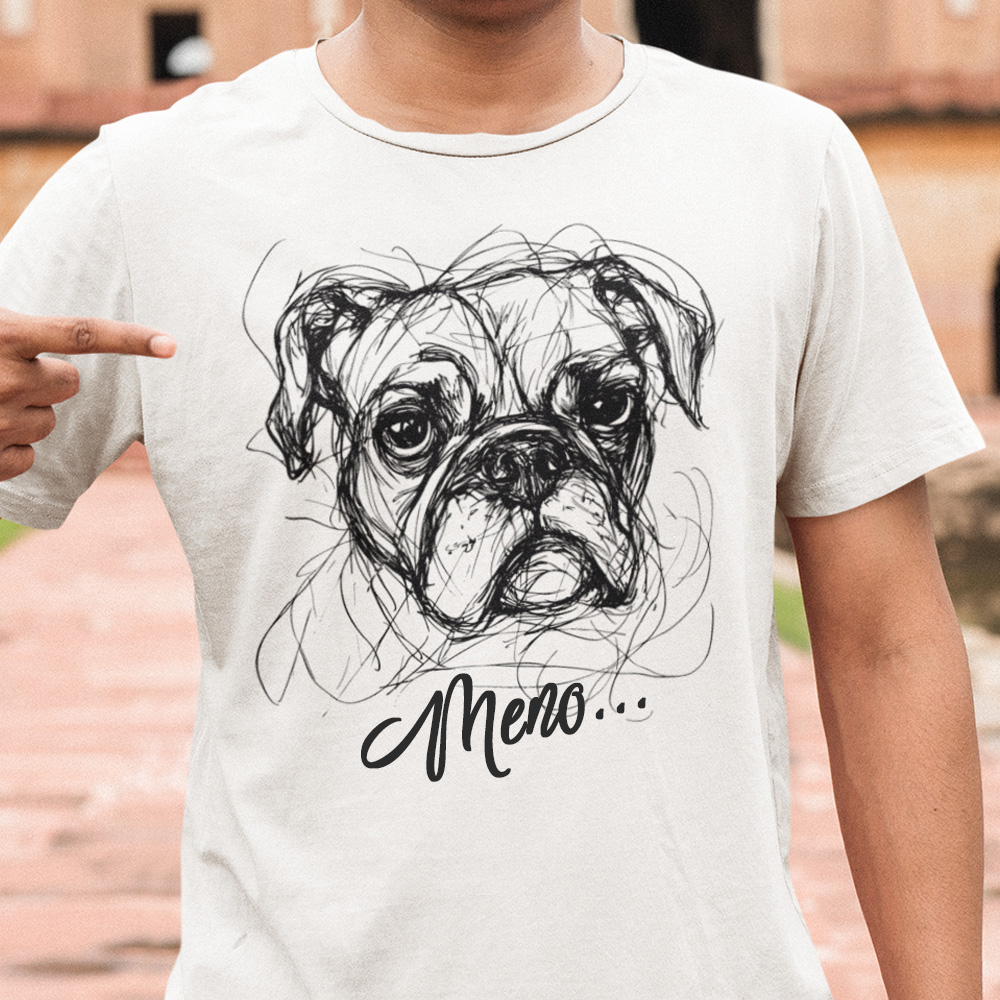 • 85-005b-tricko-s-potlacou-pes-dog-bulldog-skica-sketch-lineart-domace-zvierata-zvieratka-funny-steniatko-psik-vtipne