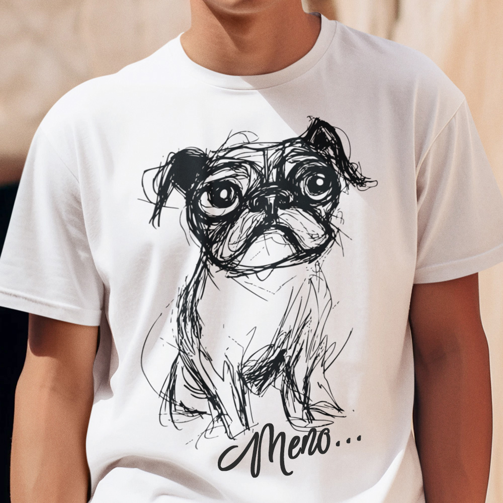 • 85-013c-tricko-s-potlacou-mops-pug-pes-dog-steniatko-skica-sketch-lineart-domace-zvierata-zvieratka-funny-steniatko-psik-vtipne
