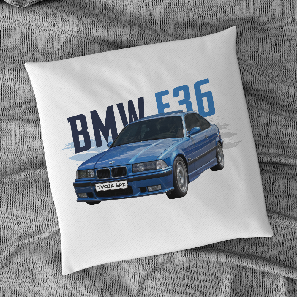 Niet nad klasiku! Daruj vankúš s motívom kultového auta BMW E36 s možnosťou doplnenia ŠPZ (dopíš do poznámky…)