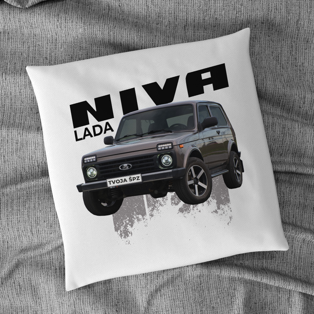 Niet nad klasiku! Daruj vankúš s motívom kultového auta LADA NIVA s možnosťou doplnenia ŠPZ (dopíš do poznámky…)