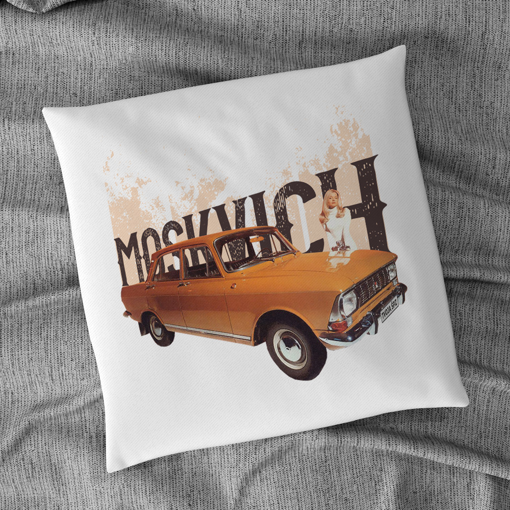 Niet nad klasiku! Daruj vankúš s motívom kultového auta MOSKVICH s možnosťou doplnenia ŠPZ (dopíš do poznámky…).