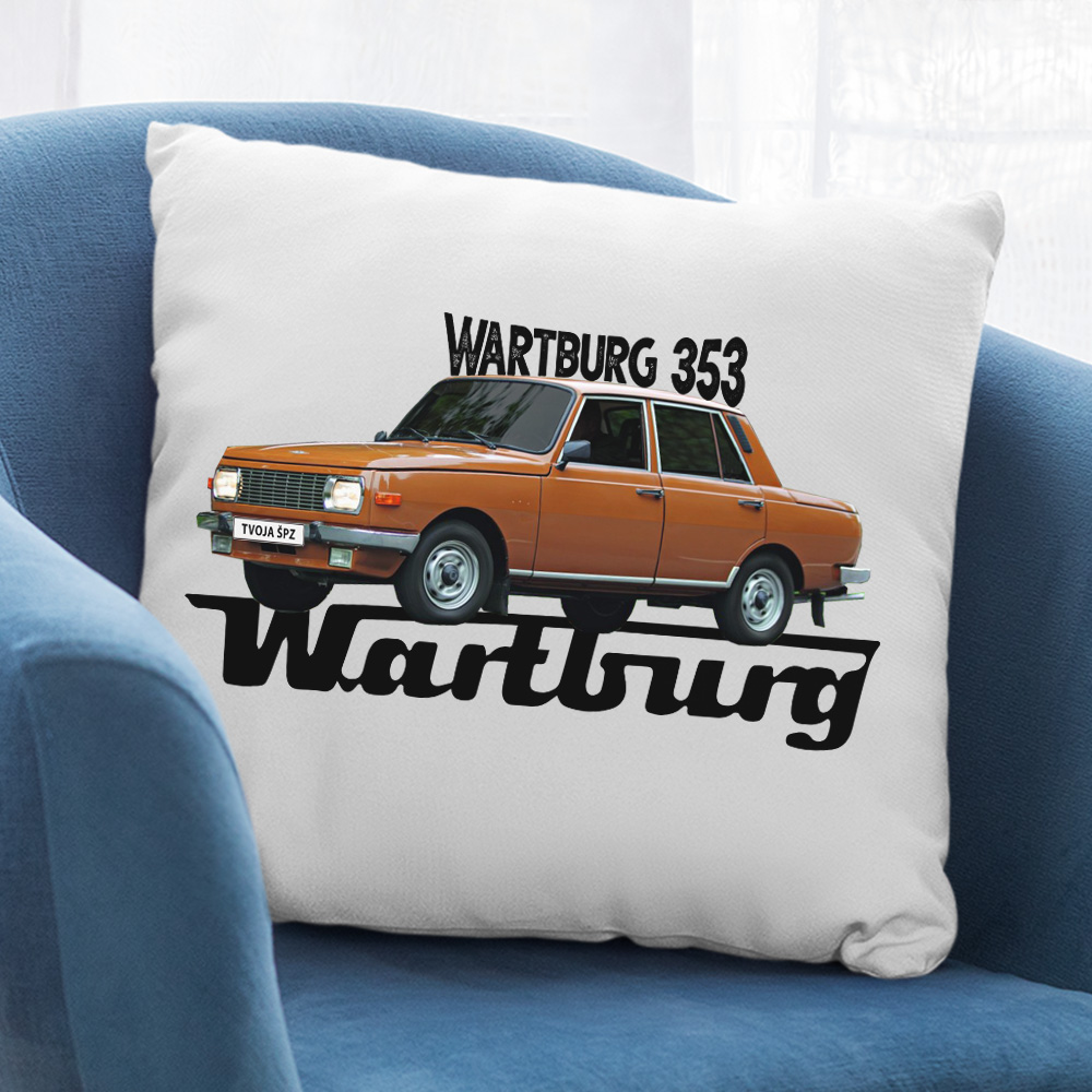 Niet nad klasiku! Daruj vankúš s motívom kultového auta Wartburg 353 s možnosťou doplnenia ŠPZ (dopíš do poznámky…).