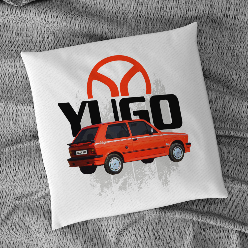 Niet nad klasiku! Daruj vankúš s motívom kultového auta YUGO s možnosťou doplnenia ŠPZ (dopíš do poznámky…).